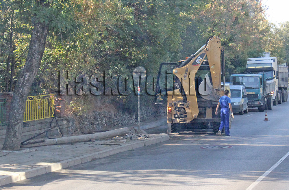 Малко по-късно колата беше вдигната от пътна помощ. Пристигна техника, която да вдигне падналия стълб.