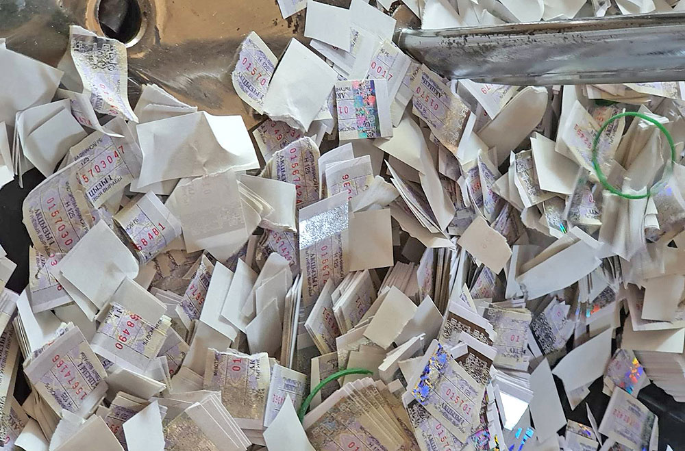 6 006 000 чужди бандероли, предназначени за облепване на акцизни стоки са унищожени чрез механично нарязване вчера. При същата процедура са унищожени още 23 132 текстилни изделия, обувки, парфюми и емблеми за капаци за джанти на автомобилни гуми с лога на известни марки. Стоките са открити през настоящата година при митнически проверки на превозни средства и пътници, влизащи в страната от Турция през ГКПП „Капитан Андреево“.