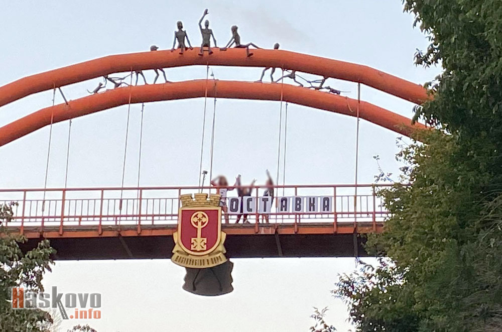 Надпис „Оставка“ се появи на оранжевия мост в Хасково, а читатели на Haskovo.info изпратиха снимка.
