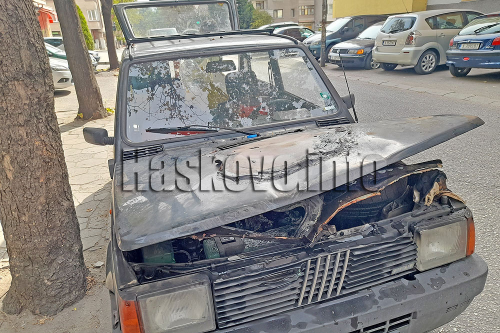 Лек автомобил Фиат с газова уредба пламна след обяд на улица „Георги Кирков“ в Хасково.