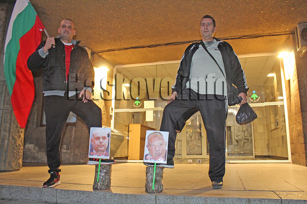 Протестиращите срещу управлението на страната поставиха по едно пънче пред областна администрация и съдебната палата в Хасково.