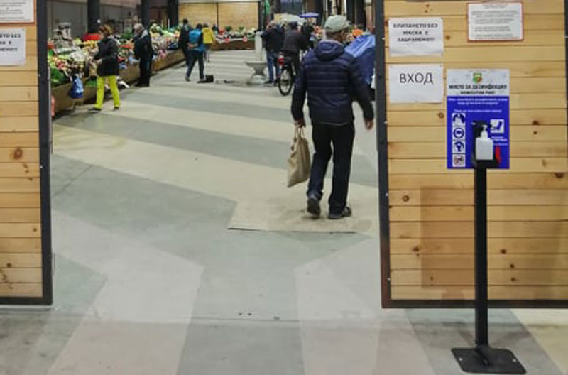 Поставиха диспенсъри за дезинфекция в Димитровград и табели за вход и изход на Неделния пазар