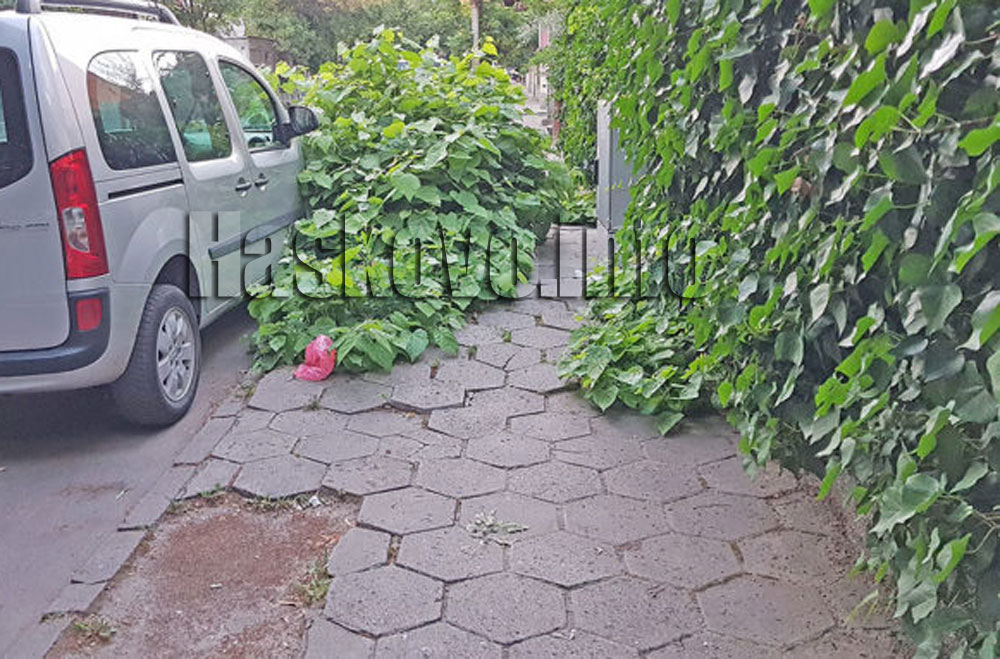 Повечето тротоари са повредени от паркиралите върху тях автомобили.