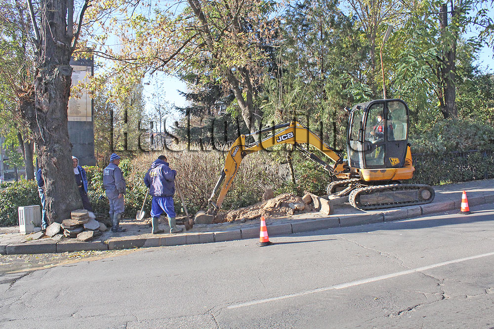 ВиК разкопа тротоара до площад „Спартак“ в търсене на аварията