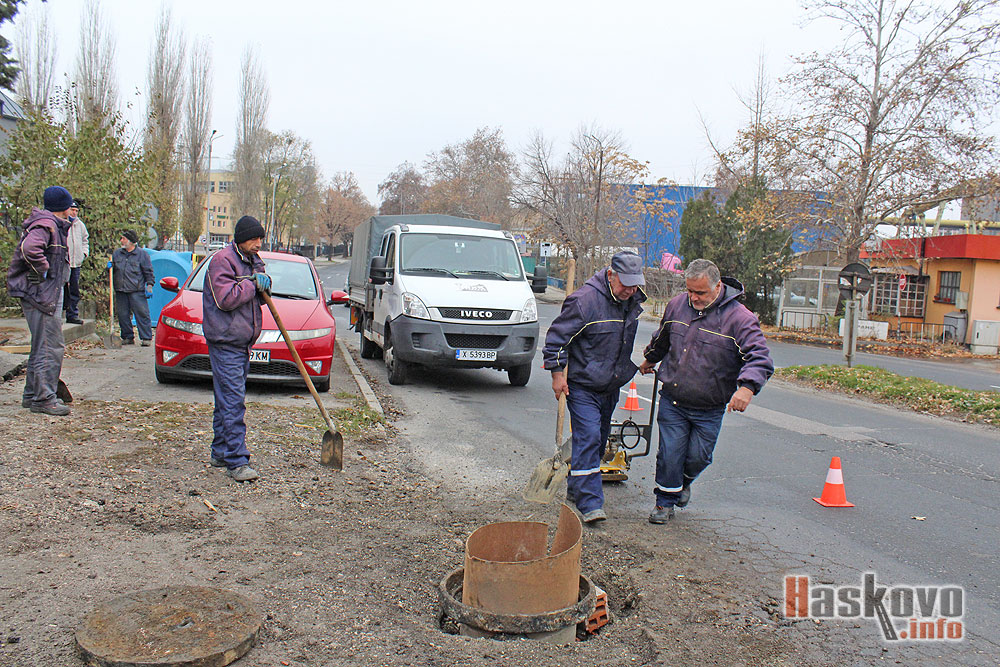 Екип на ВиК повдигна нивото на улична шахта на булевард „Васил Левски“ до бившата Захарна фабрика в Хасково.