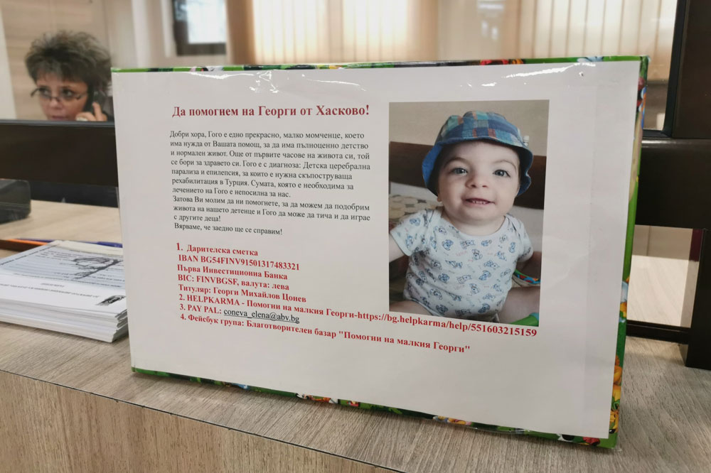 Кутии за дарения за лечението на малкия Георги от Хасково са поставени от днес в Центъра за административно обслужване на гражданите в сградата на община Хасково, на информацията и в Касовия салон на Общинската данъчна дирекция.