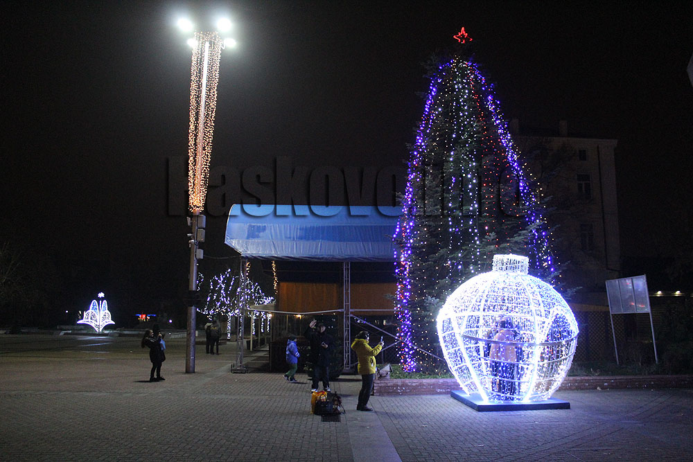 До елхата е светещата топка, където първите вече се снимат. Грее новата украса в шадравана и по дърветата между площада и общината. Елхата пред кметството също е украсена празнично.