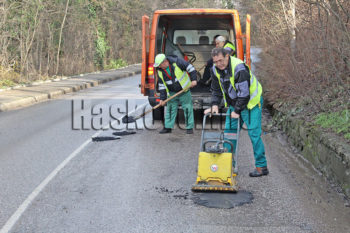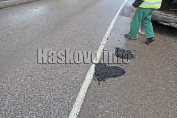 Опасни дупки по хасковската улица „Панорама“ бяха изкърпени днес със студена асфалтова смес от „Екопрогрес“.