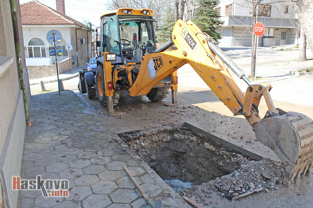 Отстраняването на ВиК авария затрудни движението по улица "Цар Страшимир" до старата баня в Хасково.