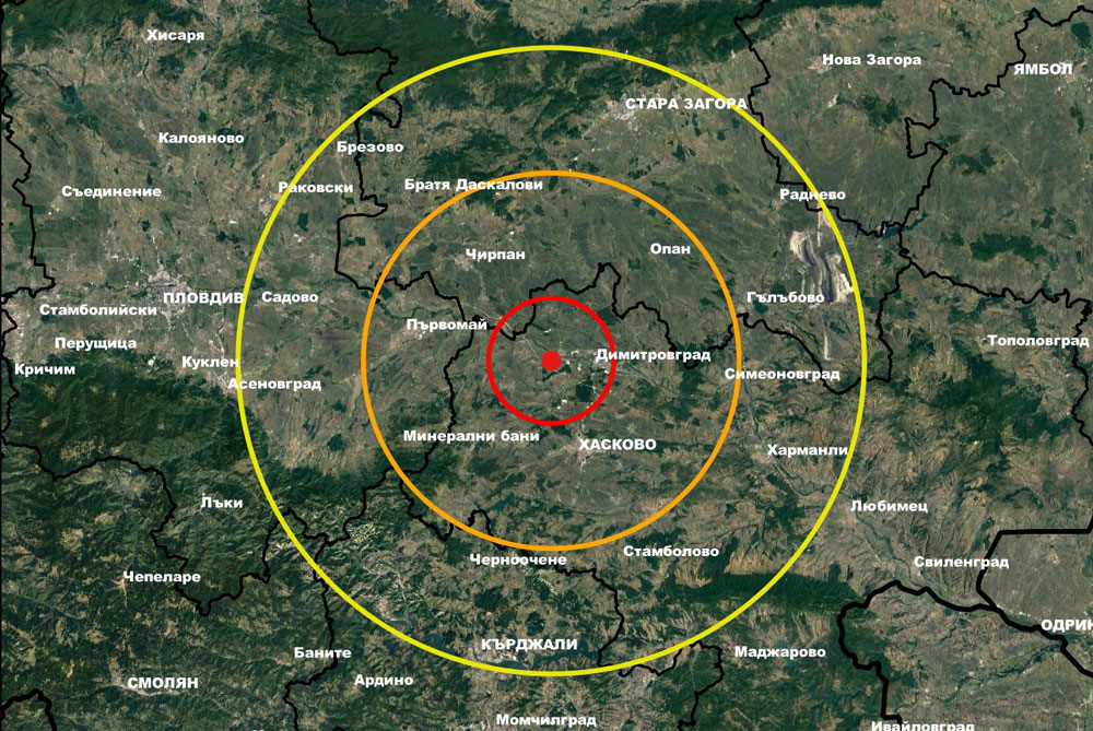 По данни на Европейския средиземноморски сеизмологичен център епицентърът е на 15 километра северозападно от Хасково на 2 километра дълбочина.