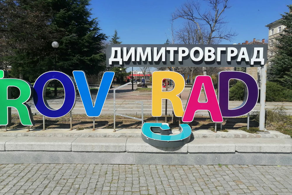 Мъж с бутилки в ръце чупи букви от надписа „Димитровград“ – ВИДЕО