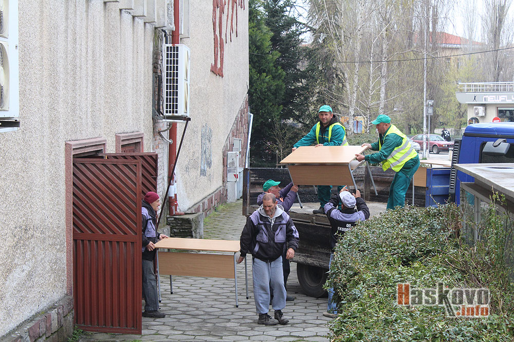 Изнасят масите и столовете от спортна зала „Дружба“, където се приемаха изборните книжа на секциите от Хасковска област.
