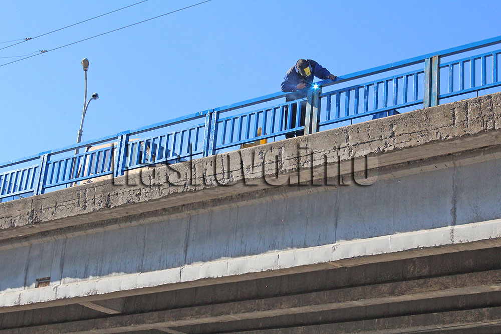 Работниците подменят част от предпазните ограждения и ремонтират други. Ще бъдат сменени над 200 метални пана от двете страни на моста. Работата се очаква да приключи през месец май.