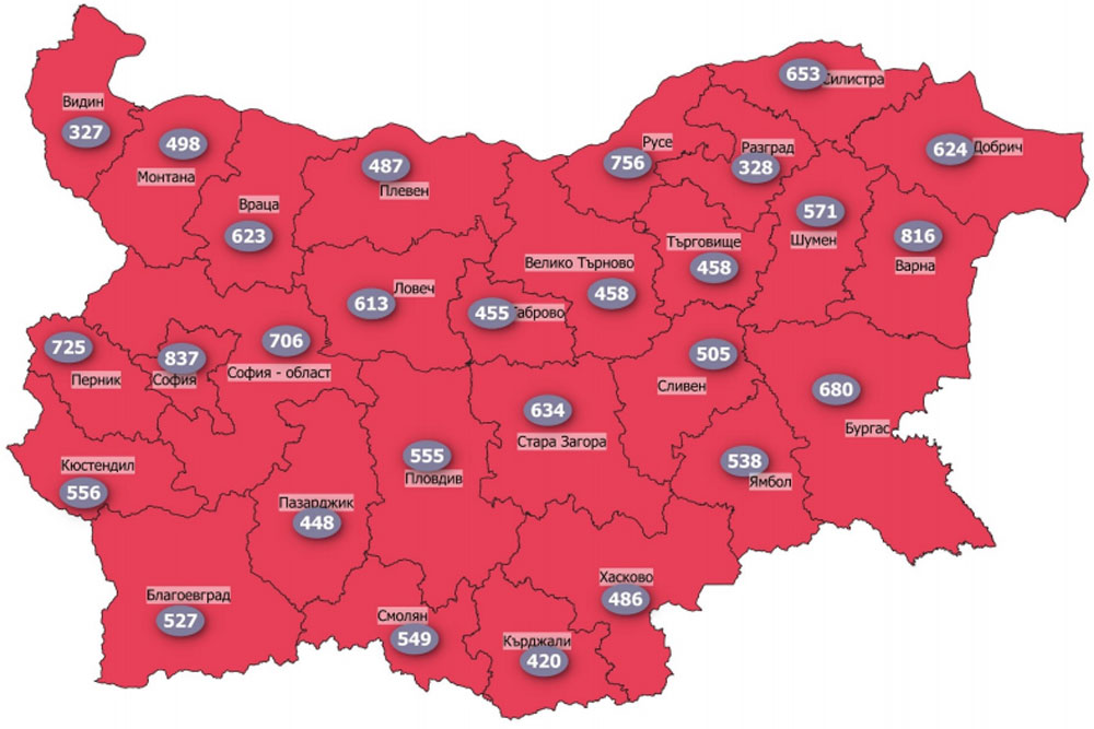 2 944 са новозаразените в страната при направени 16 242 теста. 127 са починали, а оздравелите са 3 995. 9 799 са настанени в болница, като 799 са в интензивни отделения. Поставени са 10 503 дози ваксина.
