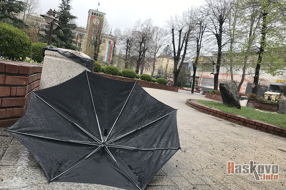 Хасковлия е изхвърлил употребения си чадър в центъра на града.