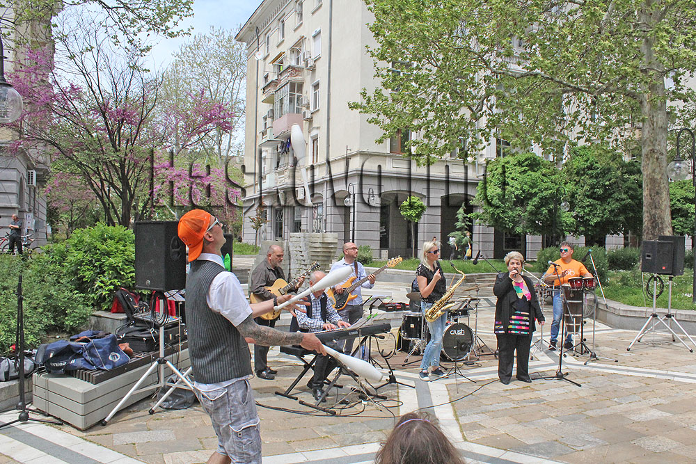 Пред димитровградчани и гостите на града с популярни джазови пиеси се представиха Димитър Русев – китара, Митя Йорданов – пиано, Петър Ганев – ударни, Мария Арнаудова и Надя Тончева – вокали, Цветана Карагеоргиева – саксофон, Иван Тонев – перкусии и Пламен Солаков – бас. По централната алея се събра публика, а аплодисменти имаше и от съседните кафенета, които бяха пълни в празничния ден. Аниматор забавляваше децата.