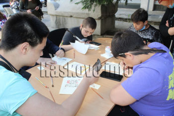 Децата се включиха в работилница по калиграфия. В тънкостите на изкуството на красивото писане ги посвети Владимир Димитров. С перо и туш децата се учеха как се изписват буквите на кирилицата след глаголицата. Те украсяваха заглавните букви, както е било в богослужебните книги. Учениците признаха, че е трудно, но приятно.