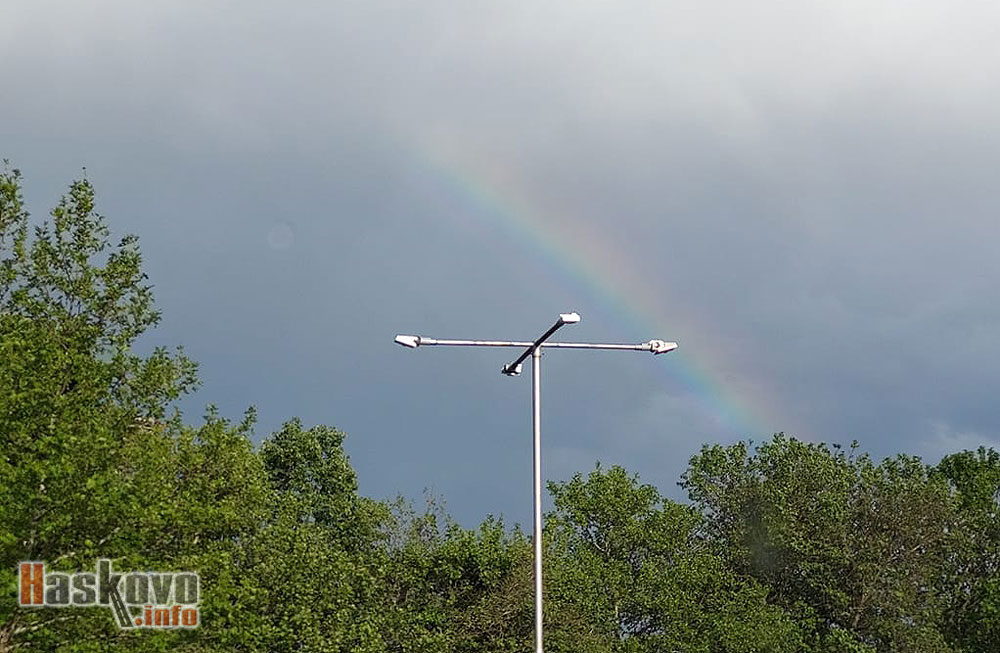 Дъга се появи в небето над Хасково при едно от днешните превалявания. Снимка: Дениз Карекинян