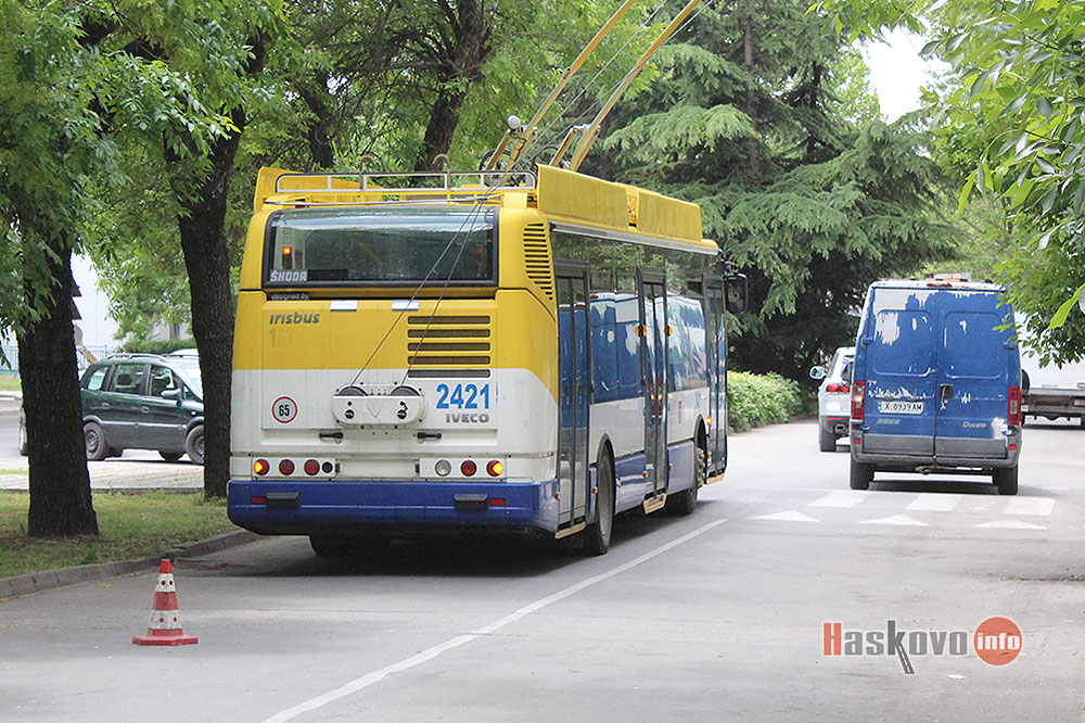 Един от новите тролеи закъса на булевард "Съединение" до хасковската болница.