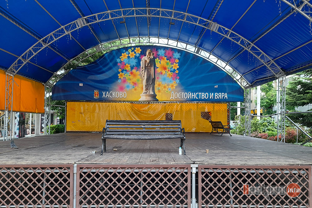 Неизвестни са преместили пейки от хасковския площад "Свобода" на сцената за удобство в дъжда.