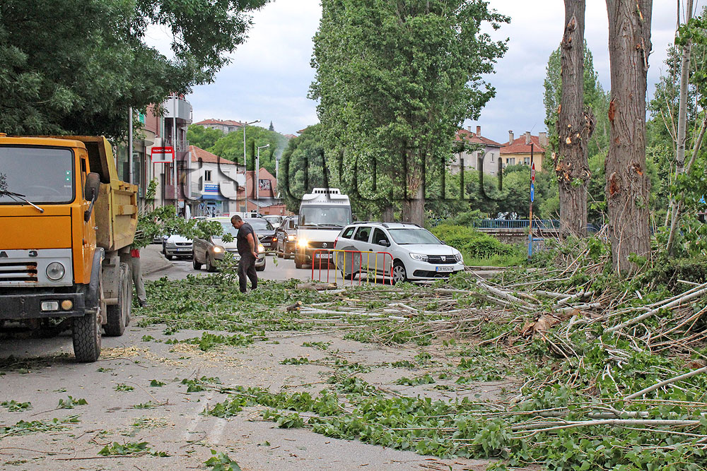 От фирмата, ангажирана със сечта на дърветата, коментираха пред Haskovo.info, че ще приключат с работата в следобедните часове, когато ще бъде възстановено движението по булеварда.