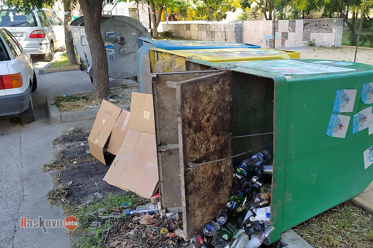 За обърнати контейнери с разпилени отпадъци в хасковския квартал „Орфей“ сигнализираха читатели на Haskovo.info.