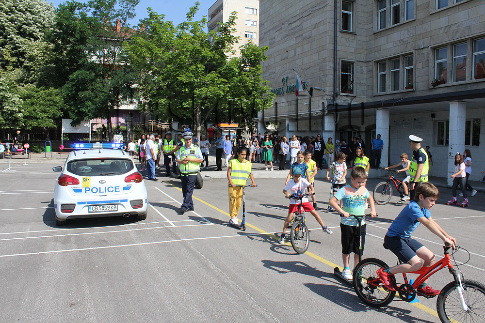 Децата правеха упражнения с ролери, велосипеди и тротинетки, като се учеха на пътните знаци и маркировка. Лекцията по пътна безопасност беше за по-големите ученици.