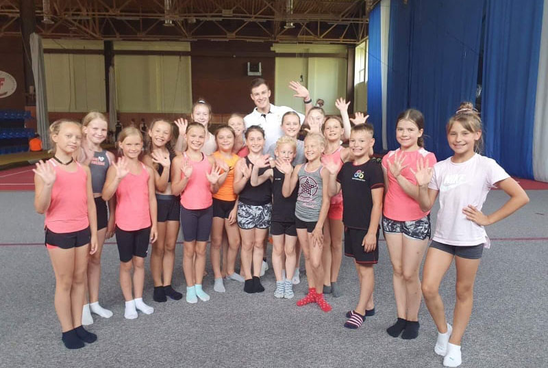 Лагерът е от 4 до 14 юли и българският национал е поканен от Литовската федерация по гимнастика. Тихомир споделя своите знания и опит с над 150 състезатели от разилчни клубве на Литва. Традиционният лагер се провежда в град Висагеняс.