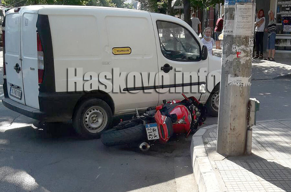 Произшествието стана преди обяд в района на зеленчуковия пазар. 72-годишен с автомобил се е движил в лявата лента на булевард, откъдето е предприел десен завой към една от пресечките. Той е ударил движещия се вдясно от него мотор.