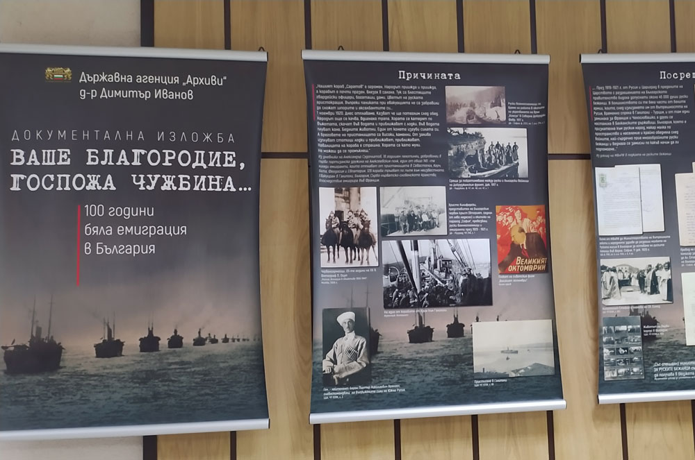 Тя е подготвена от Държавна агенция „Архиви“ по инициатива и с финансовата подкрепа на д-р Димитър Иванов. В експозицията е проследен пътят на бялата емиграция до нашата страна и включването на емигрантите в културния, икономическия и обществения живот в България. Подчертана е и съпричастността на българската държава към нерадостната съдба на руските бежанци, както и оказаното им гостоприемство.