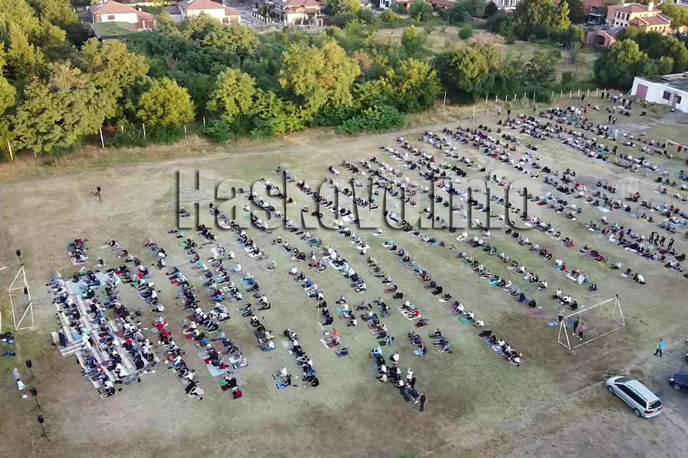 Много вярващи се събраха на помощните игрища до стадион „Хасково“ в парк „Ямача“ за сутрешната молитва на големия мюсюлмански празник Курбан Байрам. Това беше първата молитва за Ерхан Реджеб като районен мюфтия на Хасково. Той идва от Кърджали.