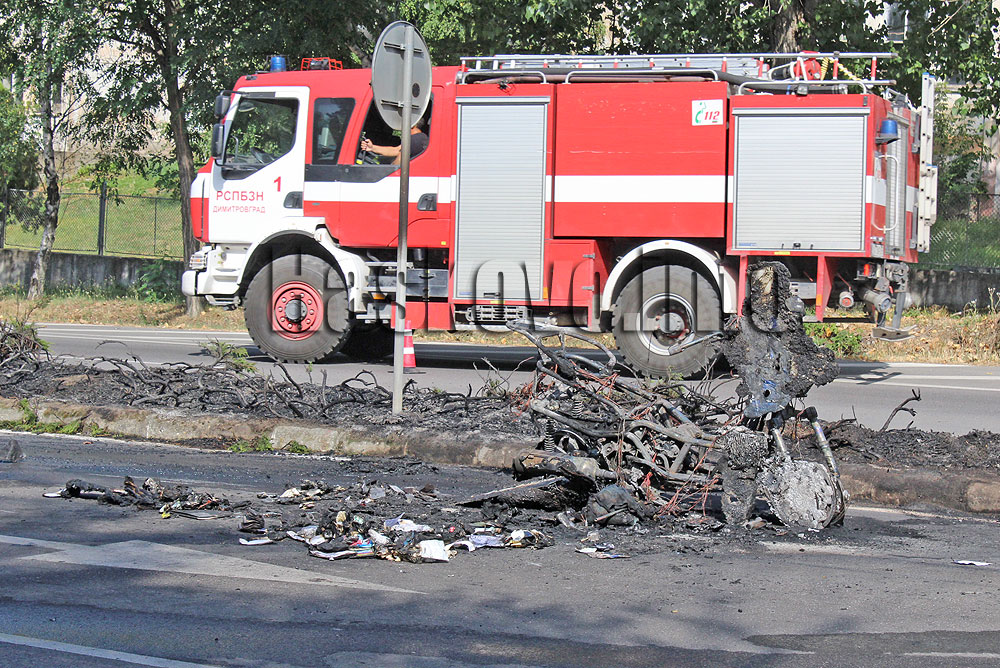 Словенски моторист е пътувал за среща със свой познат в Хасково. На изхода на Димитровград той чул шум от мотора, който пламнал в движение, а мъжът скочил на асфалта, за да се спаси. Горящият мотор паднал, а огънят изпепелил голяма част от растителността между двете платна.