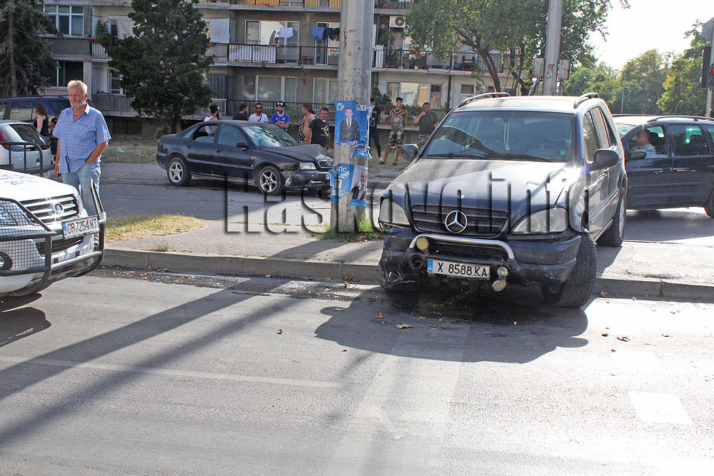 Мерцедес и Ауди катастрофираха на кръстовището между булевард „Васил Левски“ и улица „Дунав“ в Хасково.