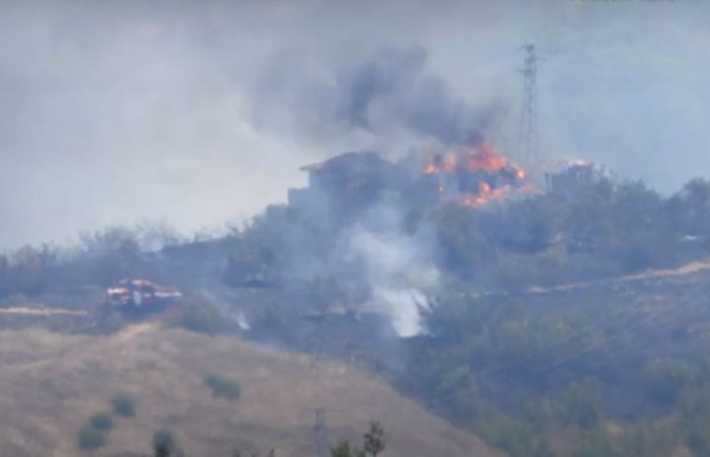 Голям пожар изпепели три вили край Харманли – ВИДЕО
