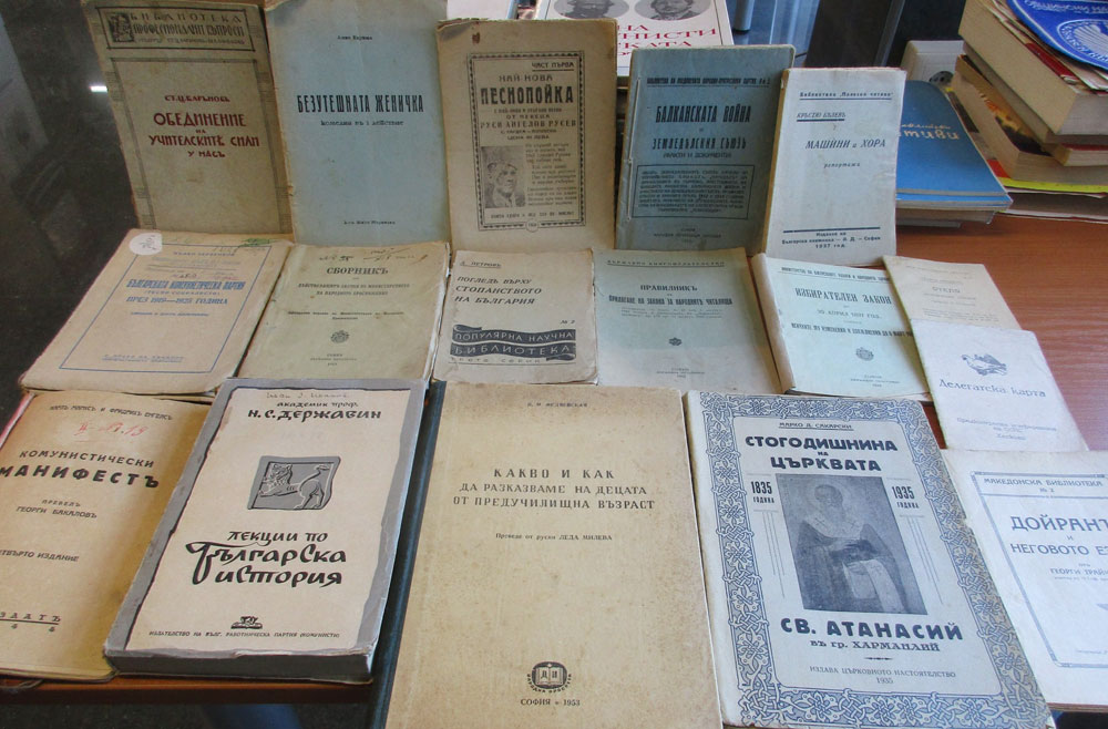 Освен художествена литература са предоставени книги на историческа тематика и адресирани към учителската аудитория. Сред тях е и екземпляр от книгата, посветена на 100-годишнита на църквата „Св. Атанасий“ в Харманли, издадена през 1935 г. от църковното настоятелство. Автор е Марко Сакарски – емблематична личност, допринесла за обществено-политическия и културно-просветния живот на града и общината.