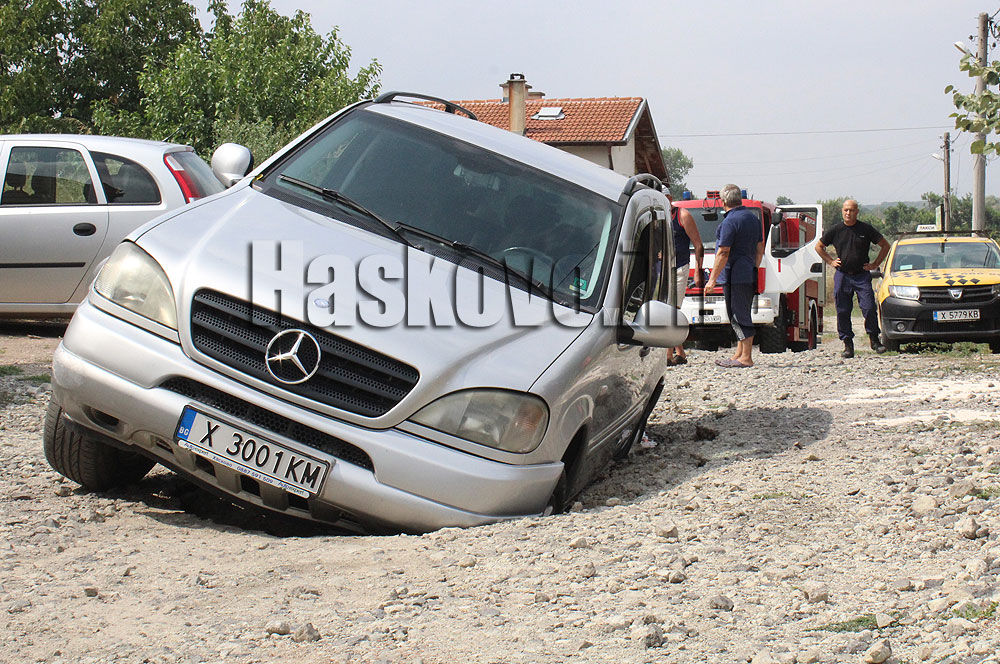 Левите колела на колата изведнъж са пропаднали в улицата, където преди време беше подменена канализацията. От мястото започна да извира вода от ВиК-авария, като малко по-късно от дружеството съобщиха за Haskovo.info, че изпращат екип на мястото. При инцидента няма пострадали хора.