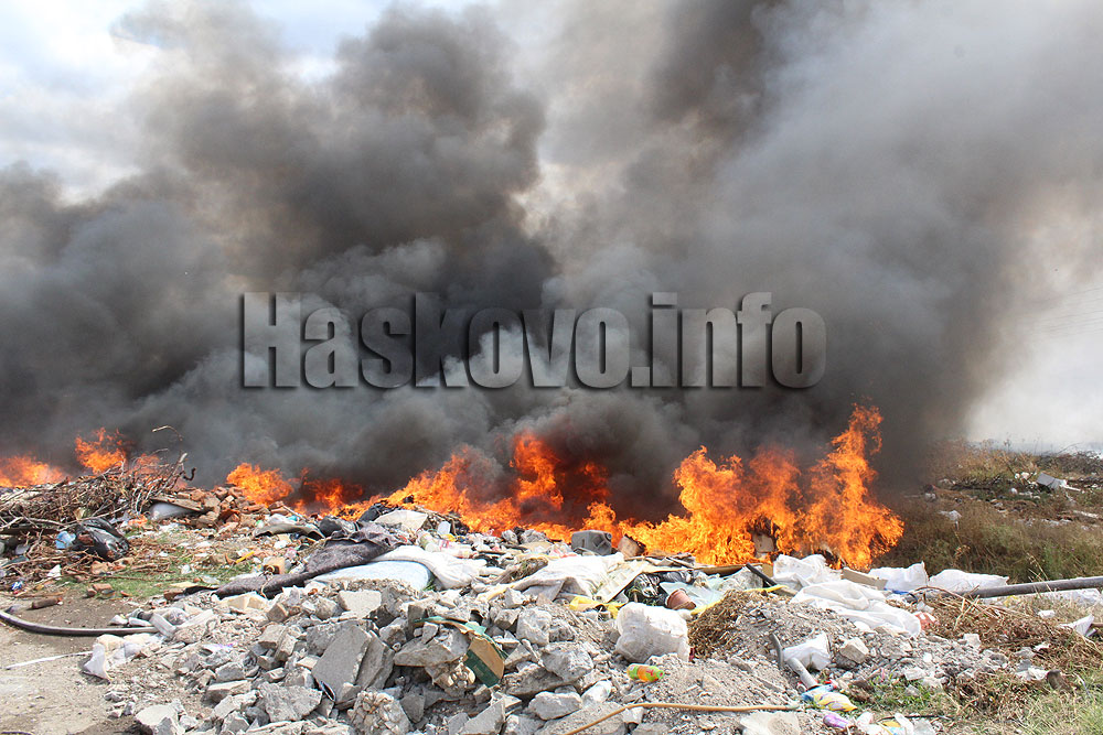 Горяха основно всевъзможни отпадъци и сухи треви. В огъня имаше и флакони, които гърмяха от високата температура. Запалиха се гуми и пластмаси, от които се вдигна гъст и черен пушек. Гасенето беше затруднено от вятъра, който разпалваше огъня и разнасяше дима към града.