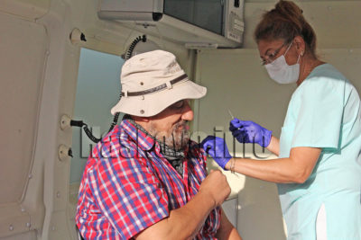 Мобилен кабинет на РЗИ – Хасково започна тази сутрин ваксинация срещу COVID-19 на желаещите клиенти и търговци на Неделния пазар в Димитровград.