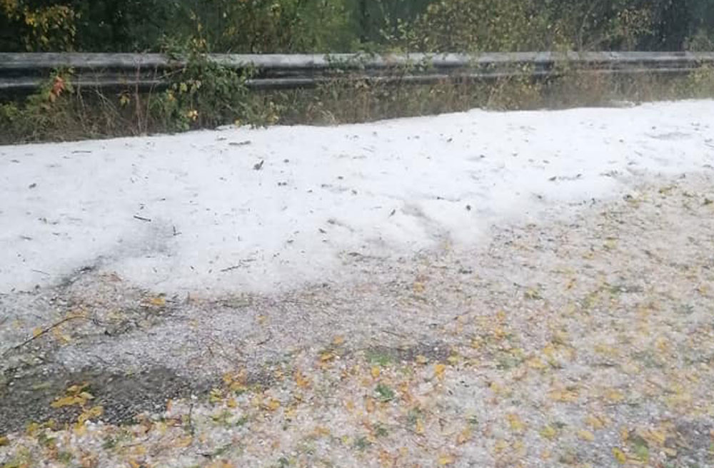 Градушка падна след обяд в района на Ивайловград. В социалните мрежи се появиха снимки на побелели от ледените зърна пътища.