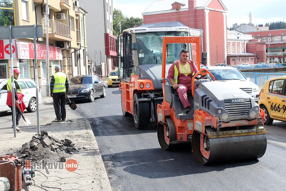 Преасфалтирането на булеварда покрай хасковския театър се извършва в интензивен трафик и задръствания.