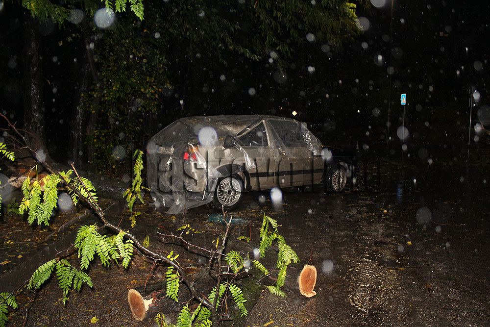 Няма пострадали хора. Единият от автомобилите е сериозно смачкан от тежестта на дървото. Собственикът му го беше покрил с найлон, за да не се пълни с вода от дъжда.