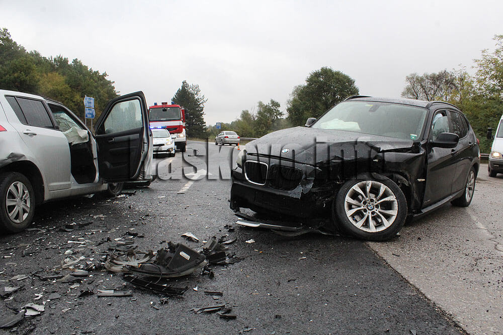 Двама мъже пострадаха при катастрофа на пътя между Хасково и Кърджали. Инцидентът стана по обяд при разклона за село Зорница. Челно са се ударили лек автомобил Сузуки и БМВ, блъснат е и Сеат с турска регистрация. Возещите се в БМВ-то мъж и жена разказаха пред Haskovo.info, че са се движили от