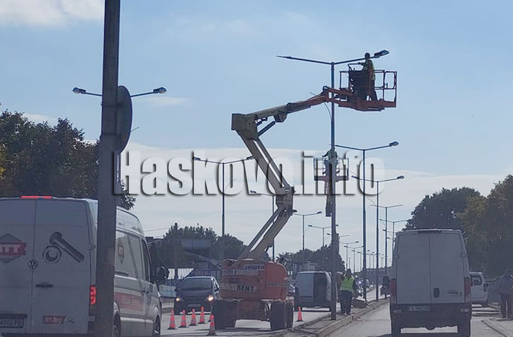 Започна подмяната на осветлението по хасковските булеварди. Днес лампите се сменяха по булевард „Освобождение“, което временно затрудняваше движението.