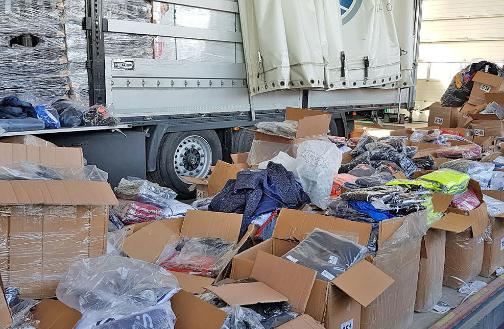 Открити са 39 972 текстилни изделия, от които 15 727 якета, блузи, спортни екипи, суитчъри, анцузи, дънки, 11 160 шапки и 6 840 чифта чорапи. Текстилните изделия са с логото на 25 световноизвестни марки. Намерени са още 6 245 детски дрешки – комплекти, клинове, рокли и жилетки, щамповани с образите на различни популярни анимационни герои. В товара имало и 1 561 чифта спортни обувки, носещи логата на известни марки. Предстои за случая да бъдат уведомени правопритежателите на търговските марки.