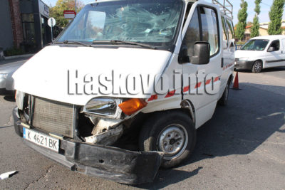 Микробус и лек автомобил Мерцедес катастрофираха преди обяд на кръстовището до бившата Захарна фабрика в Хасково.