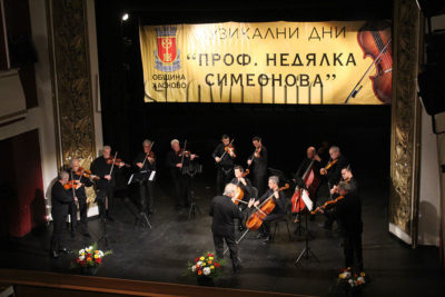 Тази вечер в театър „Иван Димов“ беше финалният концерт на Музикалните дни „Проф. Недялка Симеонова“. Пред публиката се представи Камерен ансамбъл „Софийски солисти“ с диригент проф. Пламен Джуров, солисти: проф. Йосиф Радионов – цигулка, в партньорство с Йордан Димитров и Емил Бошев. В програмата: Густав Холст – Сюита „Св. Павел“, Михаил Пеков – Партита, Масне – Размишление, Крайслер – Прелюд и Алегро, Дж. Тартини – Концерт за цигулка, Вивалди – Кончерто гроссо за три цигулки. Програмата се провежда при спазване на противоепидемичните мерки.