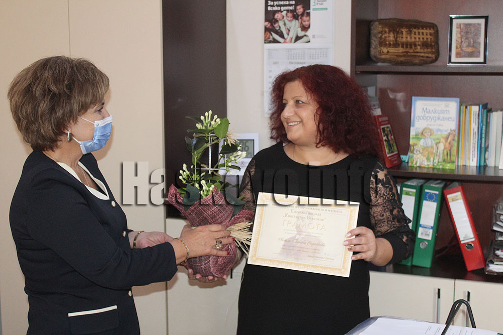 Старши учителят по български език и литература в Спортното училище „Стефан Караджа“ Светла Сирачкова получи официално наградата „Константин Величков“ от началника на Регионалното управление на образованието Веселина Павлитова.