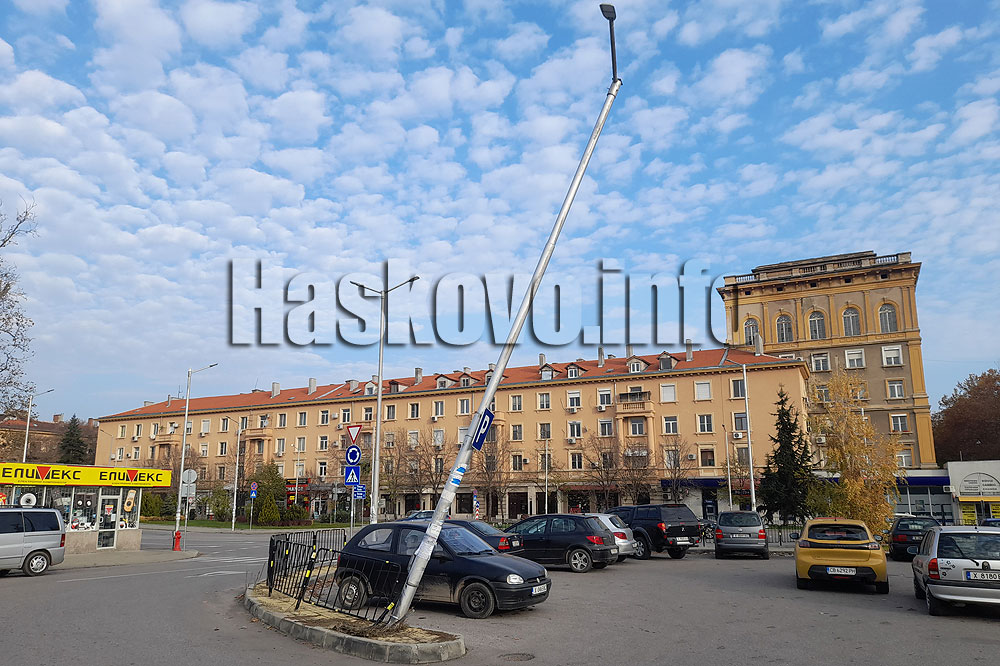 Стълб надвисна опасно след инцидент в Димитровград, сигнализираха читатели на Haskovo.info.
