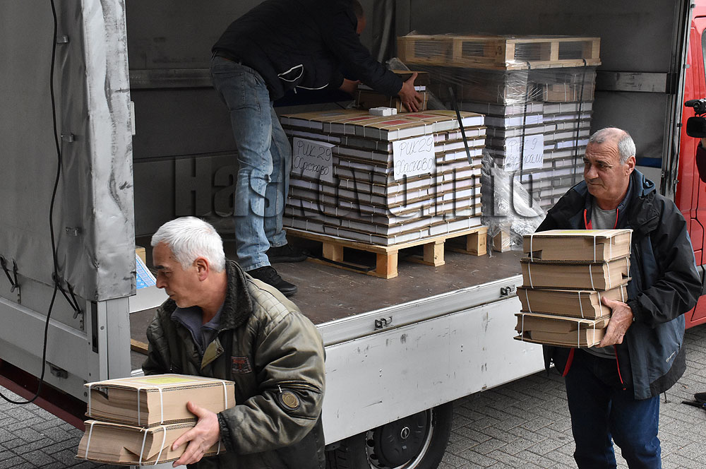 Охраняван товарен автомобил достави два палета с книжа за областите Хасково и Кърджали. Екип от съседната област пристигна, за да претовари материалите си. Първите общини от Хасковска област пък ще получат книжата си още тази вечер. Останалите ще са утре, когато пристигат и бюлетините.