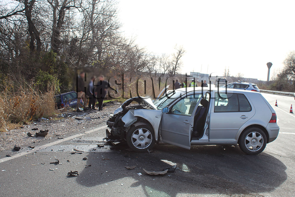Двамата пострадали са откарани в Спешно отделение на МБАЛ – Хасково. По автомобилите има сериозни материални щети. Движението по пътя се регулира от полиция.